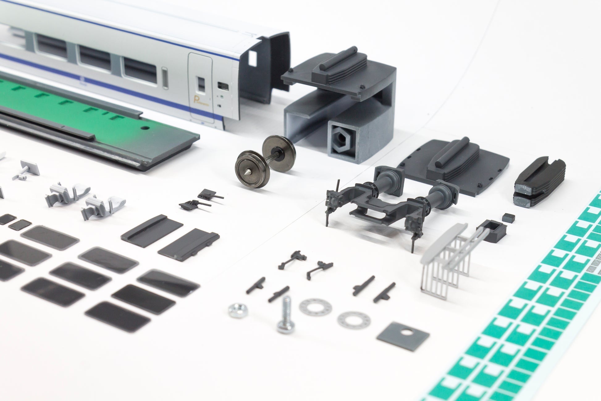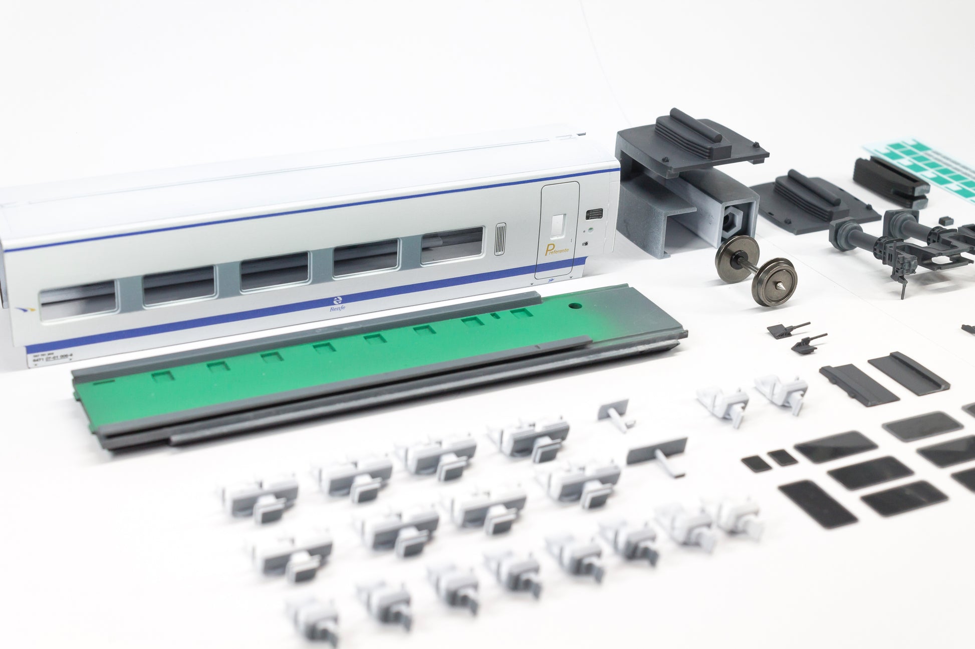 - Piezas ya pintadas y acabadas (como en las fotografías), a excepción de los asientos, que se encuentran imprimados en blanco.