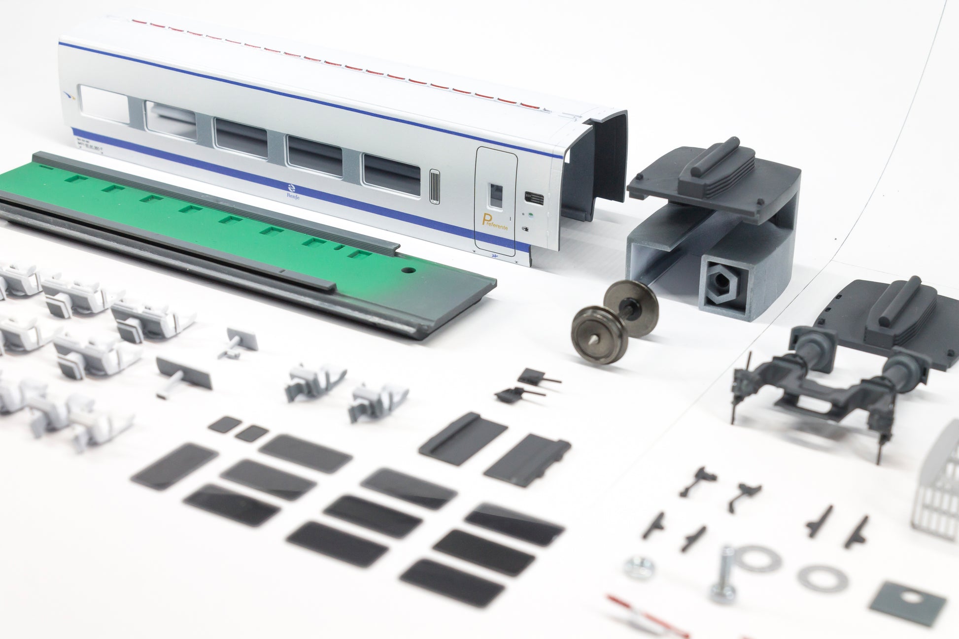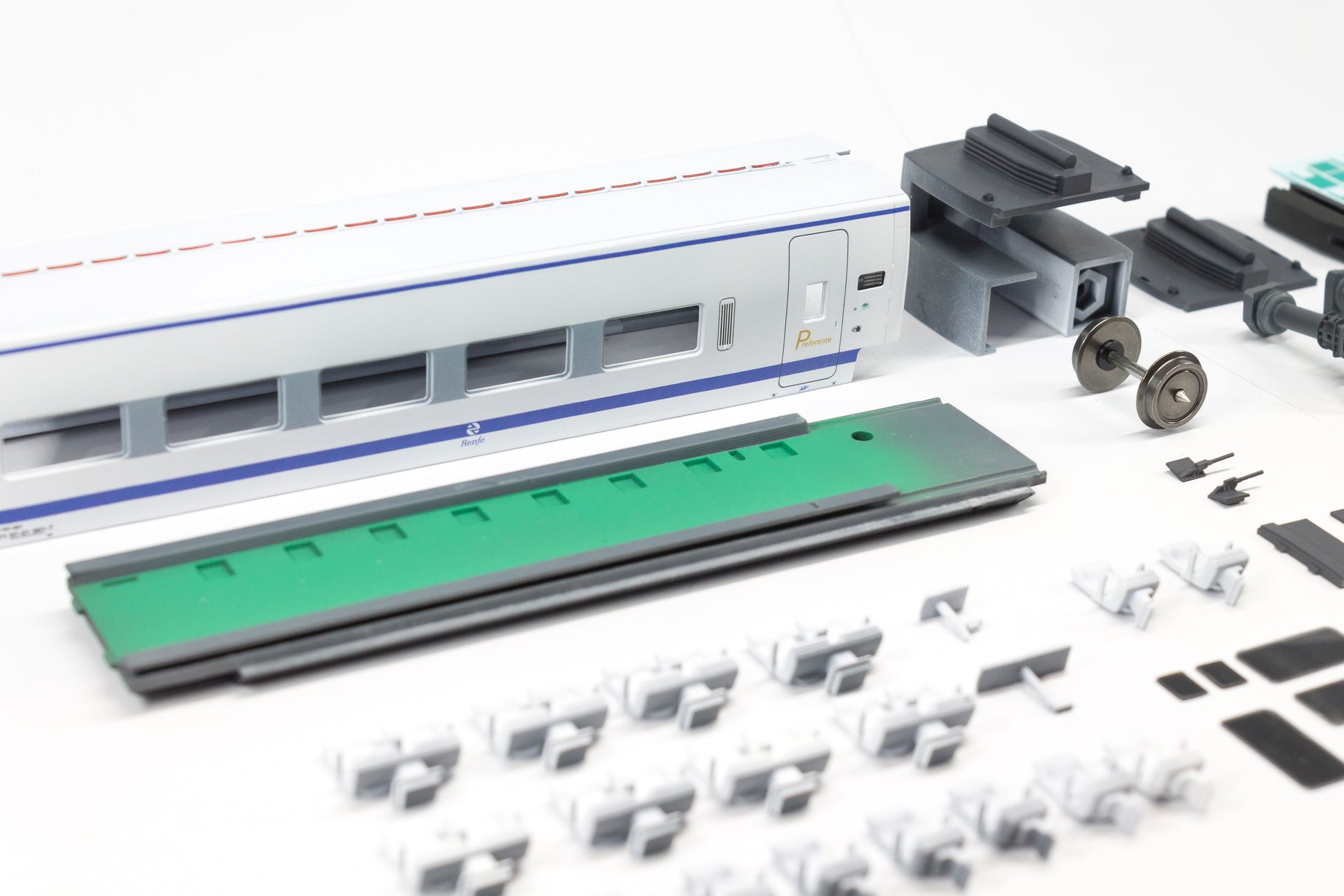 - Piezas ya pintadas y acabadas (como en las fotografías), a excepción de los asientos, que se encuentran imprimados en blanco.